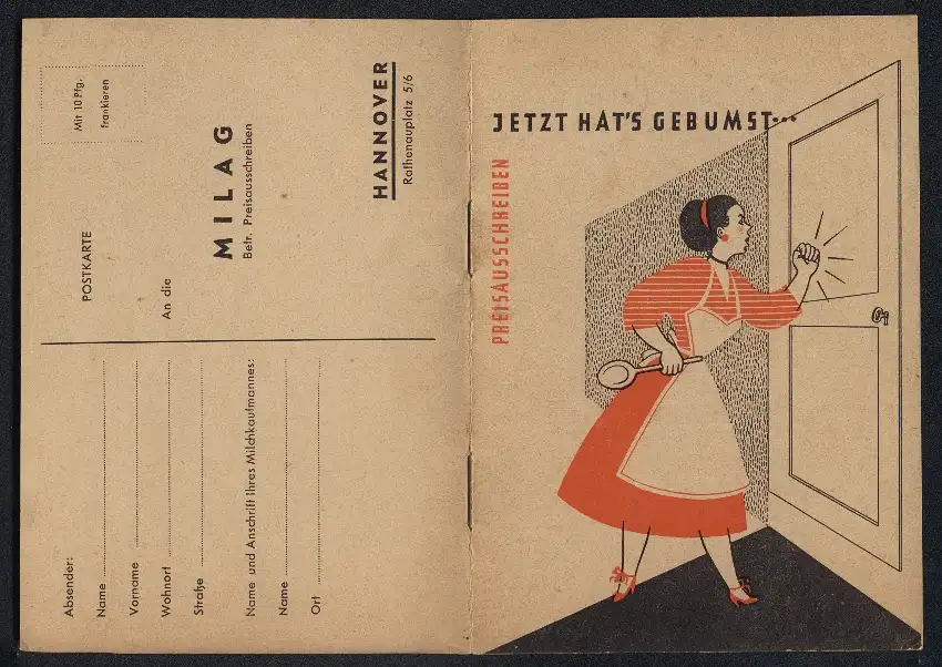Broschur-AK Hannover, Preisausschreiben der Firma Milag, Werbetext