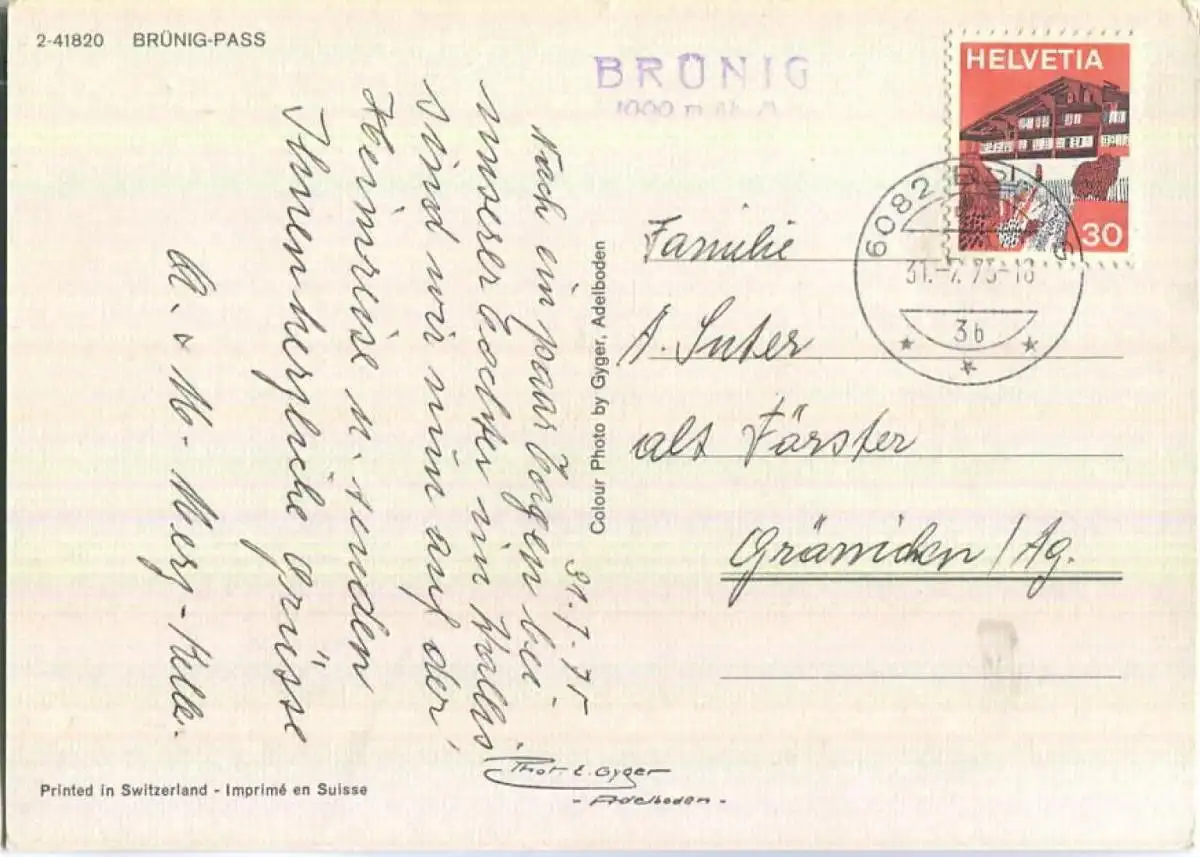 Brünigpass - Verlag Gyger Adelboden - leichte Gebrauchsspuren (E91283) gel. 1975