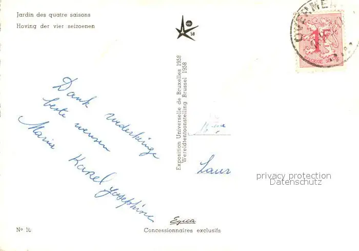 Bruxelles_Bruessel Jardin des quatre saisons Bruxelles_Bruessel postalisch gelaufen 1958 Erhaltung siehe scans [WerneD78] WernPID7