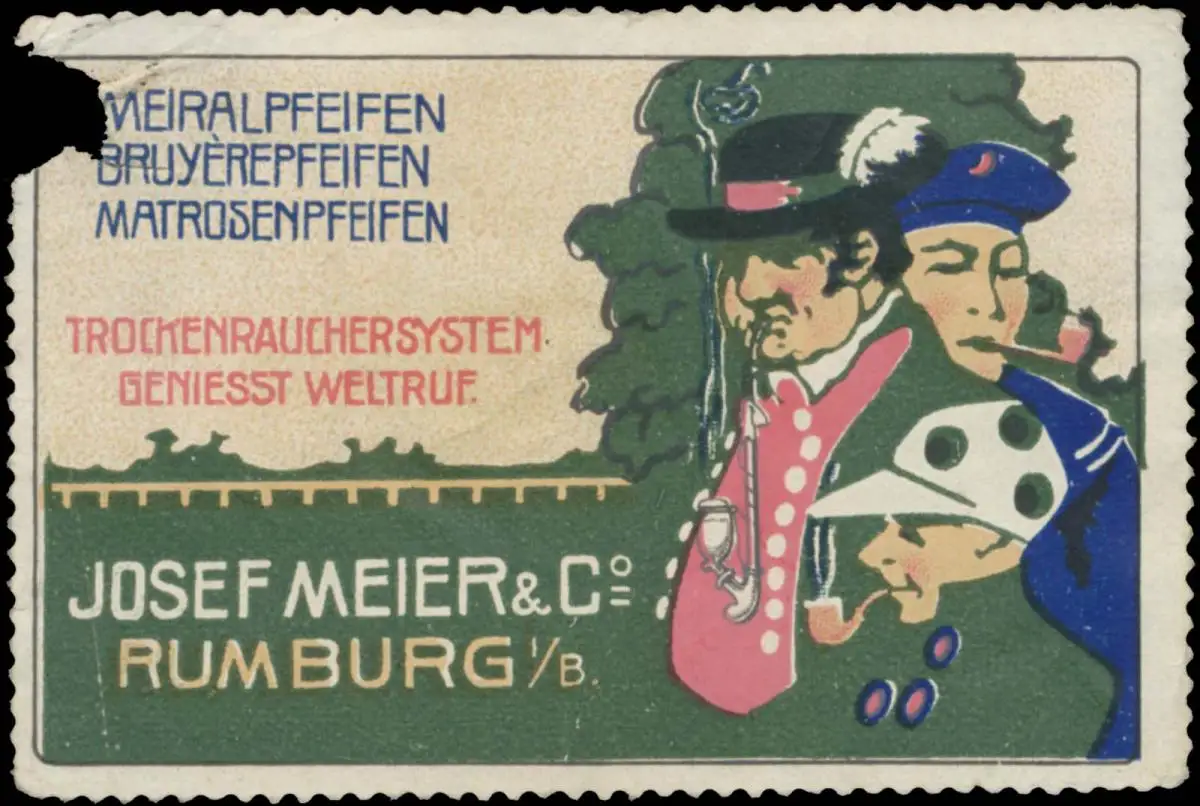 Trockenrauchersystem geniesst Weltruf, Tabakwaren, Pfeifen, Größe/Zustand: 5x7 , beschädigt, Original alte Reklamemarke die seinerzeit für die Werbung benutzt wurde