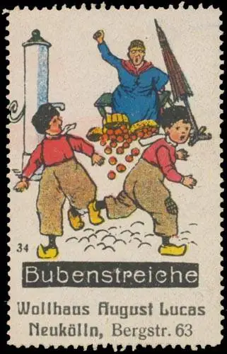 Nr. 34, Neukölln, Größe/Zustand: 6x4 , guter Zustand, Original alte Reklamemarke die seinerzeit für die Werbung benutzt wurde