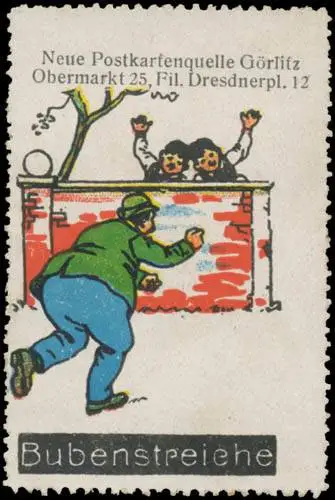 Neue Postkartenquelle in Görlitz, Bruno Hanzig, Ansichtskarten und Schreibwaren, Obermarkt 25, Filiale: Dresdner Platz 12, Größe/Zustand: 6x4 , guter Zustand, Original alte Reklamemarke die seinerzeit für die Werbung benutzt wurde