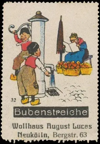 Nr. 32, Neukölln, Bergstraße 63, Größe/Zustand: 6x4 , guter Zustand, Original alte Reklamemarke die seinerzeit für die Werbung benutzt wurde
