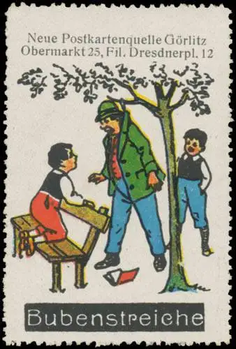 Neue Postkartenquelle in Görlitz, Bruno Hanzig, Ansichtskarten und Schreibwaren, Obermarkt 25, Filiale: Dresdner Platz 12, Größe/Zustand: 6x4 , guter Zustand, Original alte Reklamemarke die seinerzeit für die Werbung benutzt wurde