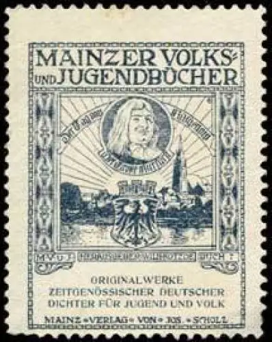 Originalwerke zeitgenössischer Dichter. Das Beste für die Jugend! Mainzer Volks- und Jugendbücher, Herrausgeber: Wilhelm Kotzde , Größe/Zustand: 4x3 , guter Zustand, Original alte Reklamemarke die seinerzeit für die Werbung benutzt wurde