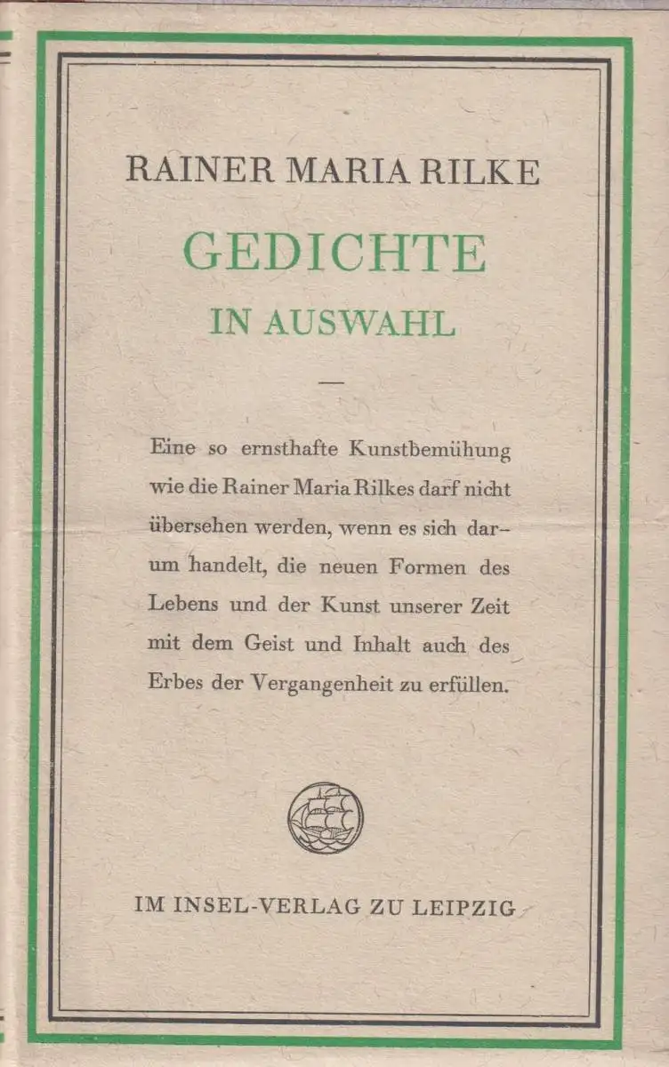 Leipzig: Insel-Verlag, 1953. 148 Seiten 19,0 x 12,0 cm, Halbleder, mit Schutzumschlag und mit Goldschnitt