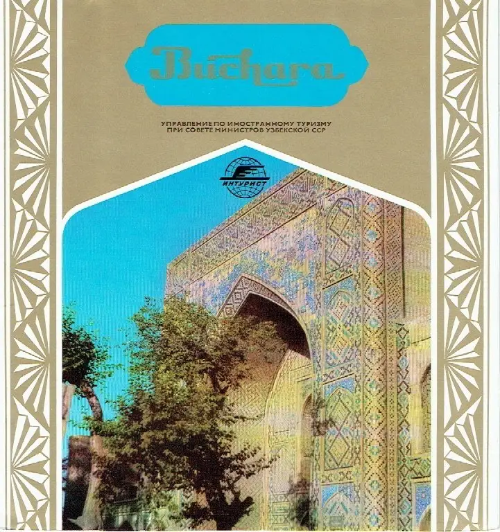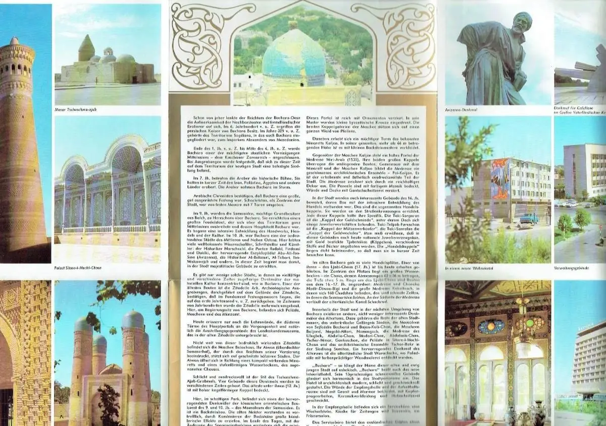 sehr guter Zustand, geringe Gebrauchs- und Alterungsspuren, Werbe-Prospekt mit Beschreibung und Informationen zur Stadt in Usbekistan, Papier, ca. 18,5 x 19,5, 12 Seiten mit 22 Bildern und halbseitigem Stadtplan