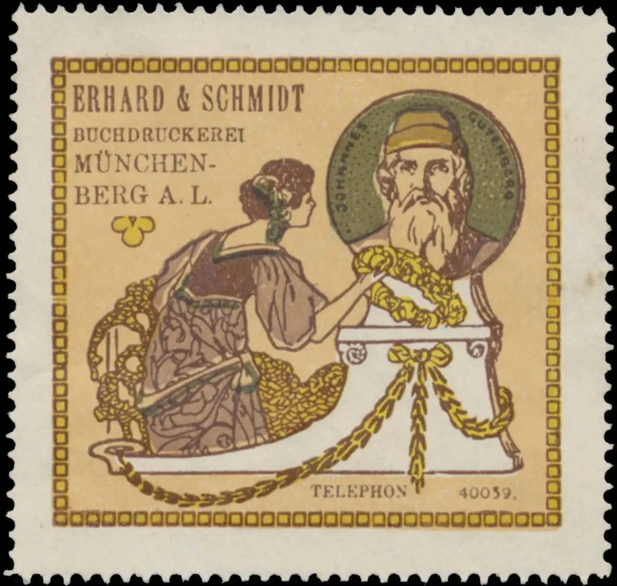 Johannes Gutenberg, Druckerei, Berg A. L., Größe/Zustand: 5x5 , leicht fleckig, Original alte Reklamemarke die seinerzeit für die Werbung benutzt wurde