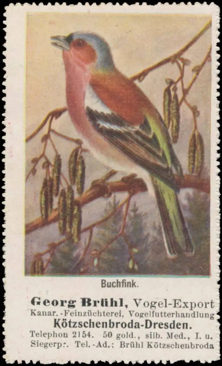 Vogel-Export, Kanar- und Feinzüchterei, Vogelfutterhandlung, Rückseite beschriftet: Vogelreklamemarken der Thüringer Kunstanstalt GmbH, Gera-Untermhaus, Größe/Zustand: 7x4 , guter Zustand, Original alte Reklamemarke die seinerzeit für die Werbung benutzt wurde