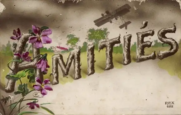 Buchstaben Ak Blumen, Flugzeug, Kitsch