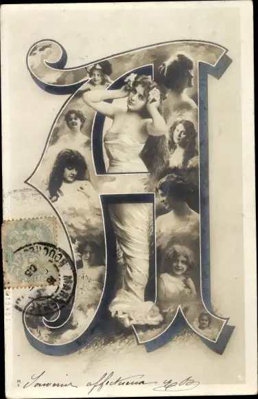 Buchstaben Ak Buchstabe A, Frauenportraits, Kinder