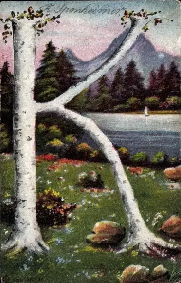 Buchstaben Ak Buchstabe K, Baum, Wiese, Teich