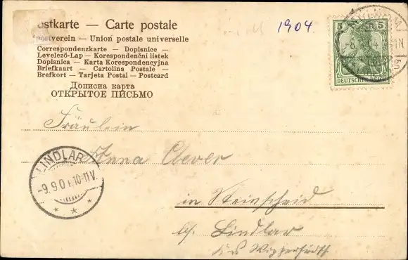 Zustand, siehe Scan, gelaufen, 1904 - ca 9 cm X 14 cm