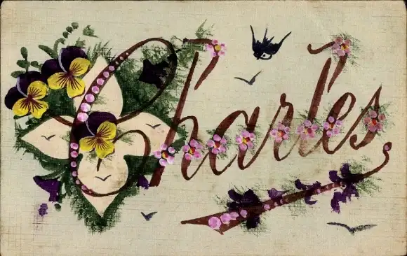 Buchstaben Ak Charles, Stiefmütterchen, Schwalbe