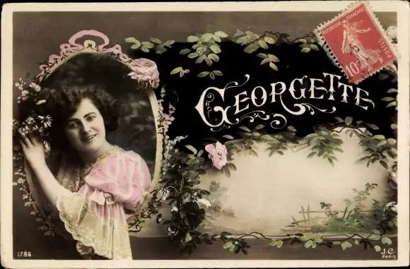 Buchstaben Ak Georgette, Frau, Blumen, Portrait