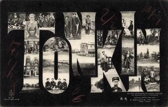 Buchstaben Ak Hanoi Tonkin Vietnam, Dom, Rikscha, Feldarbeiter, Priester, Portrait