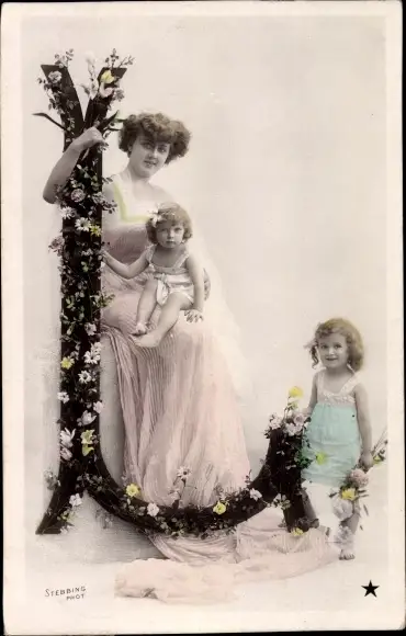 Buchstaben Ak L, Frau mit zwei Kindern