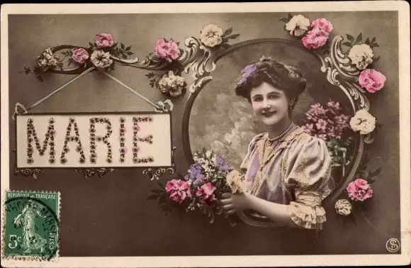 Buchstaben Ak Marie, Frau, Portrait, Blumen
