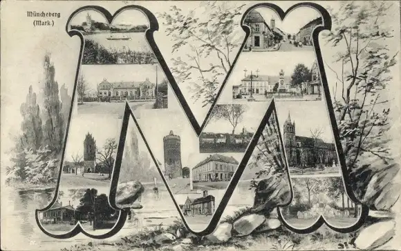 Buchstaben Ak Müncheberg in der Mark, Teilansichten, Kirche, Turm, Tor