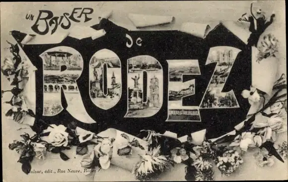 Buchstaben Ak Rodez Aveyron, Statue, Kirche, Brücke, Pavillon