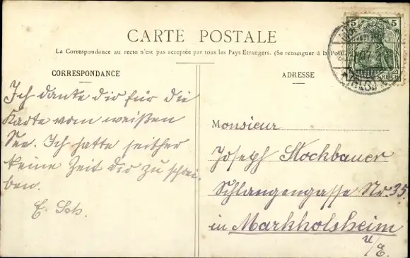 Zustand, siehe Scan, gelaufen, 1907 - ca 14 cm X 9 cm