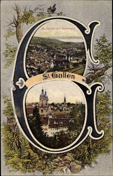 Buchstaben Ak Sankt Gallen Stadt Schweiz, Buchstabe G, Gesamtansicht mit Bodensee