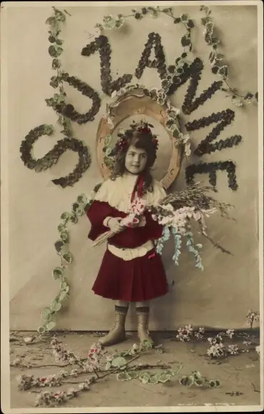 Buchstaben Ak Vorname Suzanne, Mädchen-Portrait, Blumen