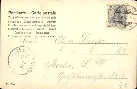 Zustand, siehe Scan, gelaufen, 1904 - ca 14 cm X 9 cm