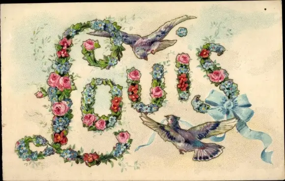 Buchstaben Präge Ak Vorname Louis, Tauben, Blumen