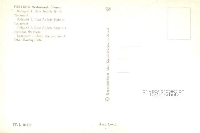 Budapest Fortuna Restaurant Budapest postalisch nicht gelaufen nach 1965 Erhaltung siehe scans [WerneD78] WernPID7