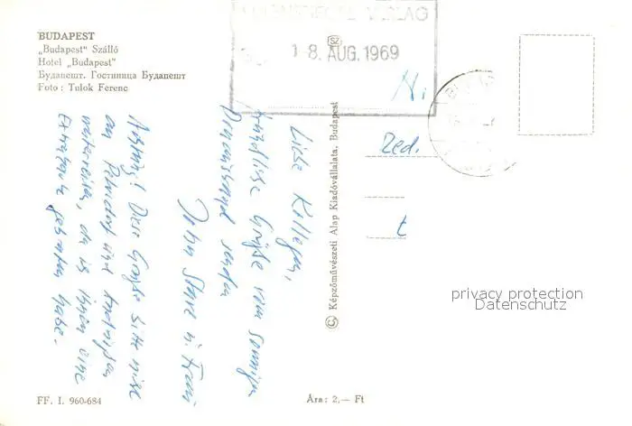 Budapest Hotel Budapest Budapest postalisch gelaufen 1969 Erhaltung siehe scans [WerneD78] WernPID7