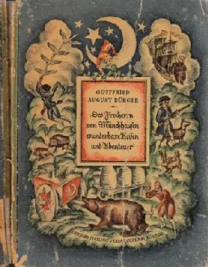 der Rücken fehlt komplett, die Seiten sind gebräunt, die Einbandkanten sind stark bestoßen, Wie derselbe bei der Flasche im Zirkel seiner freunde selbst zu erzählen pflegte. Zuerst gesammelt und englisch herausgegeben von Rudolf Raspe. Beschreibung vom Antiquariat Ardelt 4a6b Antiquariat Ardelt