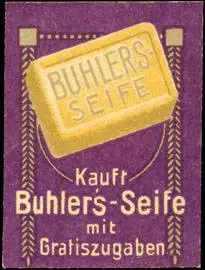 kauft Buhlers - Seife mit Gratiszugaben, Kosmetik, Waschmittel, Größe/Zustand: 4x3 , guter Zustand, Original alte Reklamemarke die seinerzeit für die Werbung benutzt wurde