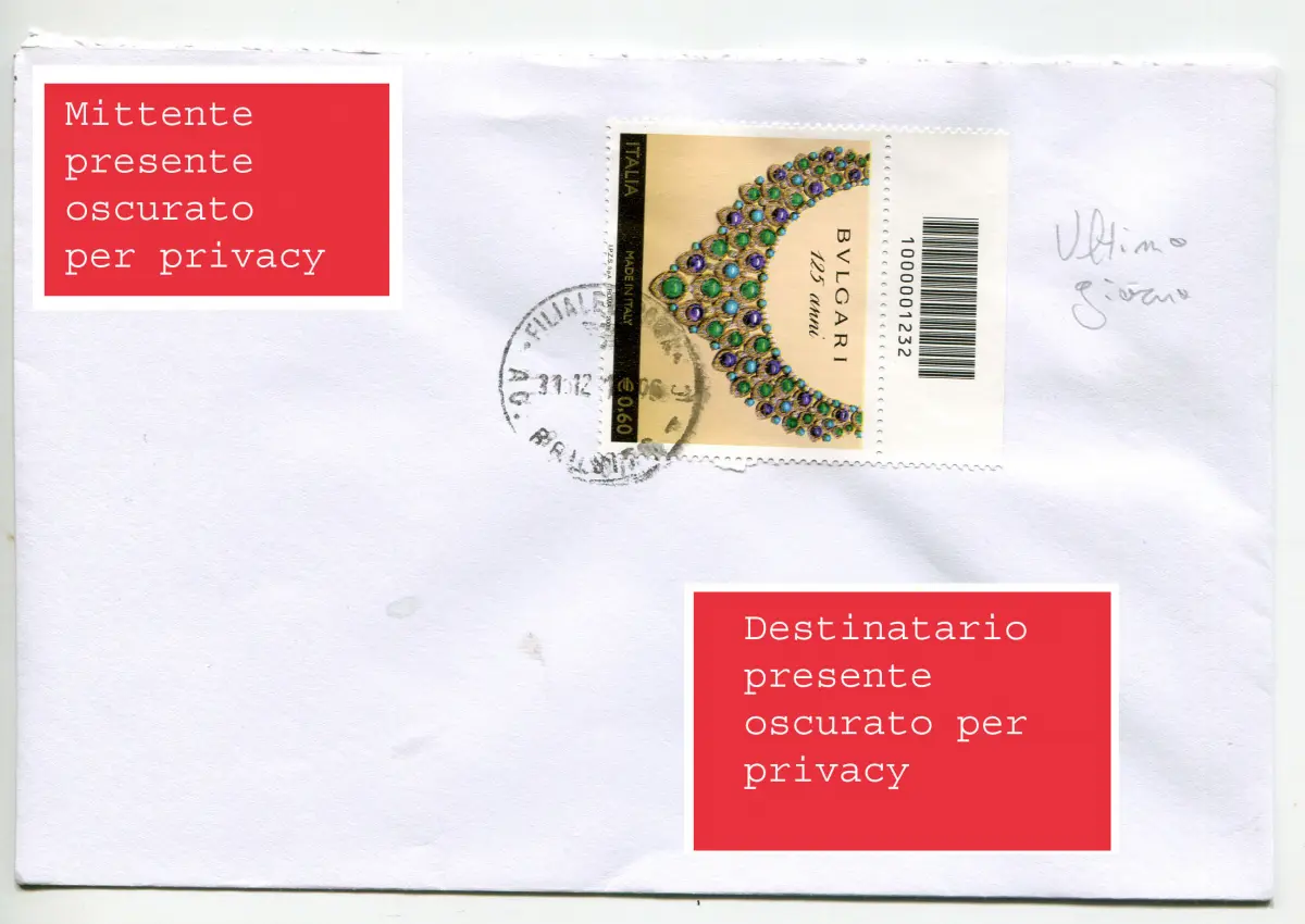 Bulgari mit Barcode isoliert auf Umschlag Umschlag - Bulgari mit Barcode isoliert auf Umschlag von Rom nach Stadt am 31.12.12 - Letzter Tag des Tarifs von 0,60. Ungewöhnlich Cod. 410/WEB Cod. 410/WEB