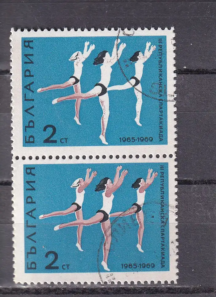 BULGARIEN BULGARIA 1969 SPARTAKIADE 2 St/ Mi 1929 PAAR DRUCKAUSFALL BRAUNE FARBE