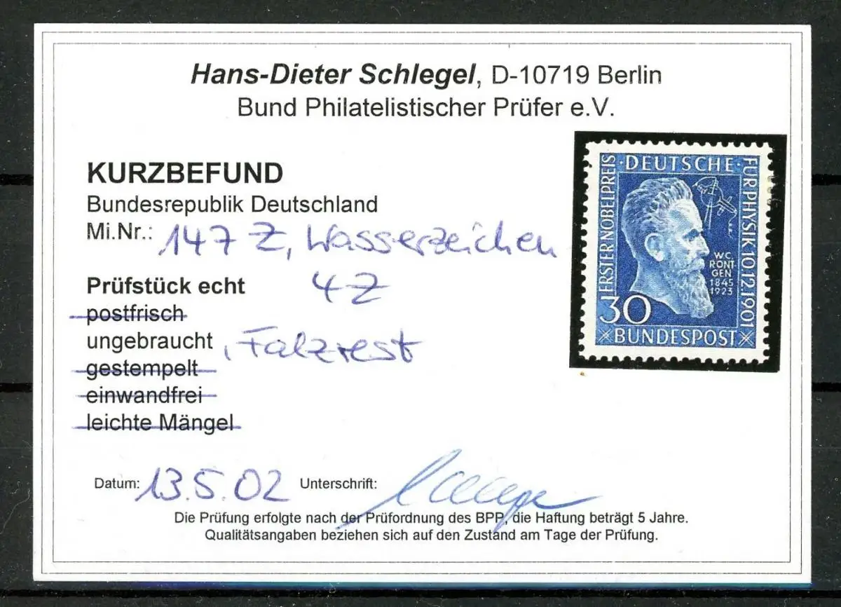 Bund 147 Z mit Falz Kurzbefund Schlegel #JM126