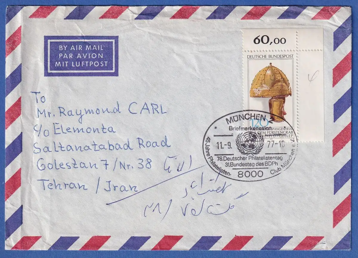 Bund 1977 Mi.-Nr. 944 Eckrandstück OR als EF auf Luftpostbrief nach Teheran