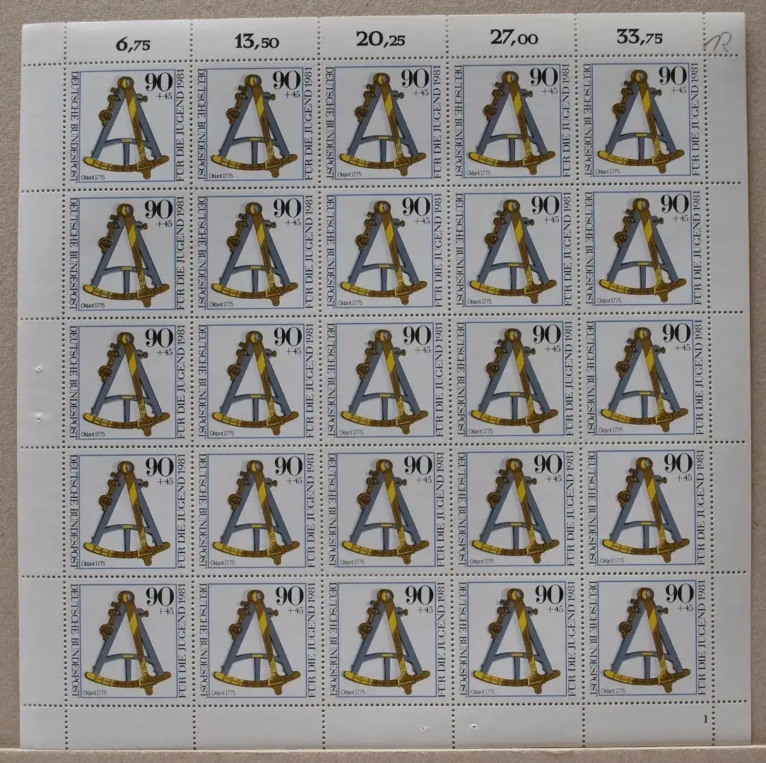 Kompletter Bogen, ungefaltet und nicht angetrennt, jedoch in der Ecke oben rechts mit Bleistift durchnummeriert! Die Abbildung ist exemplarisch!