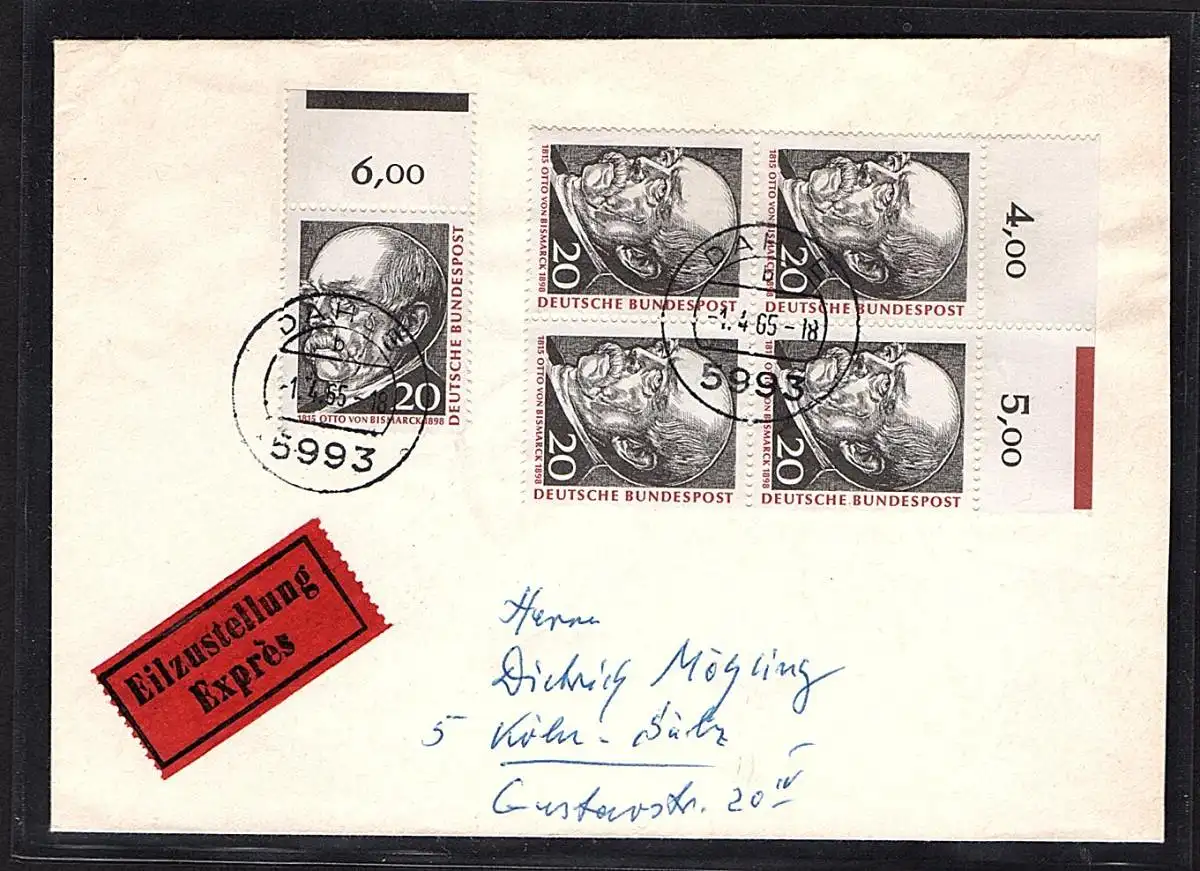 Bund , Eilbote-Fern-Brief mit MeF. Mi.-Nr. 463 mit OR. und AK-St.