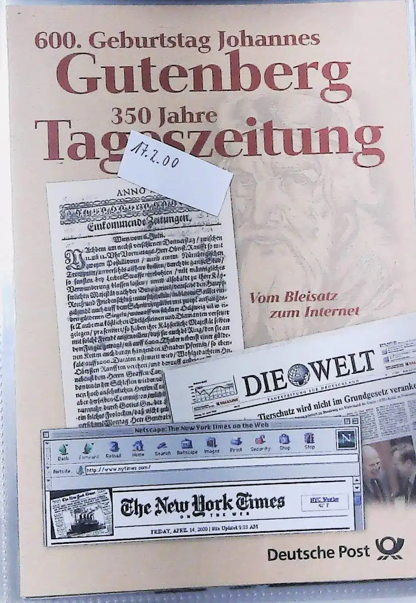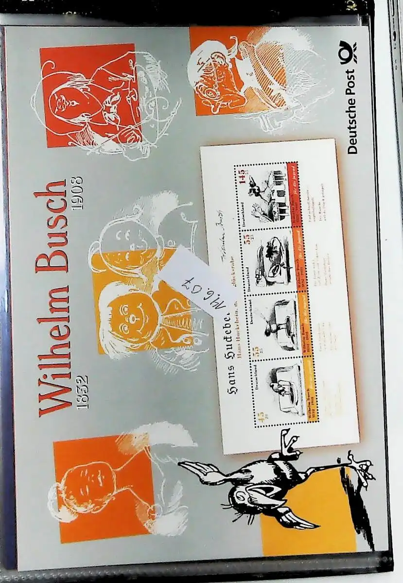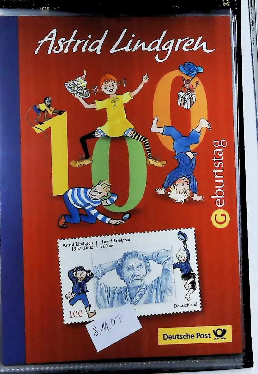 34 Erinnerungsblätter der Deutschen Post aus den Jahren 1999 bis 2008 im passenden Ringbinder mit Schuber, alle Seiten sind unten abgebildet,