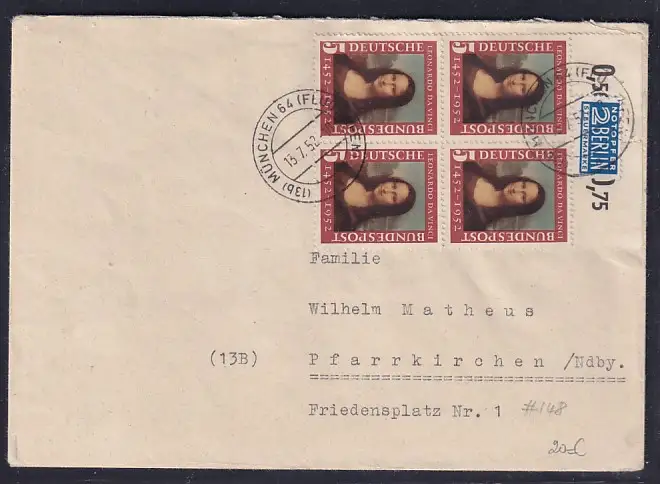Bund, Fernbrief mit MeF. Mi.-Nr. 148 OR. (4X)