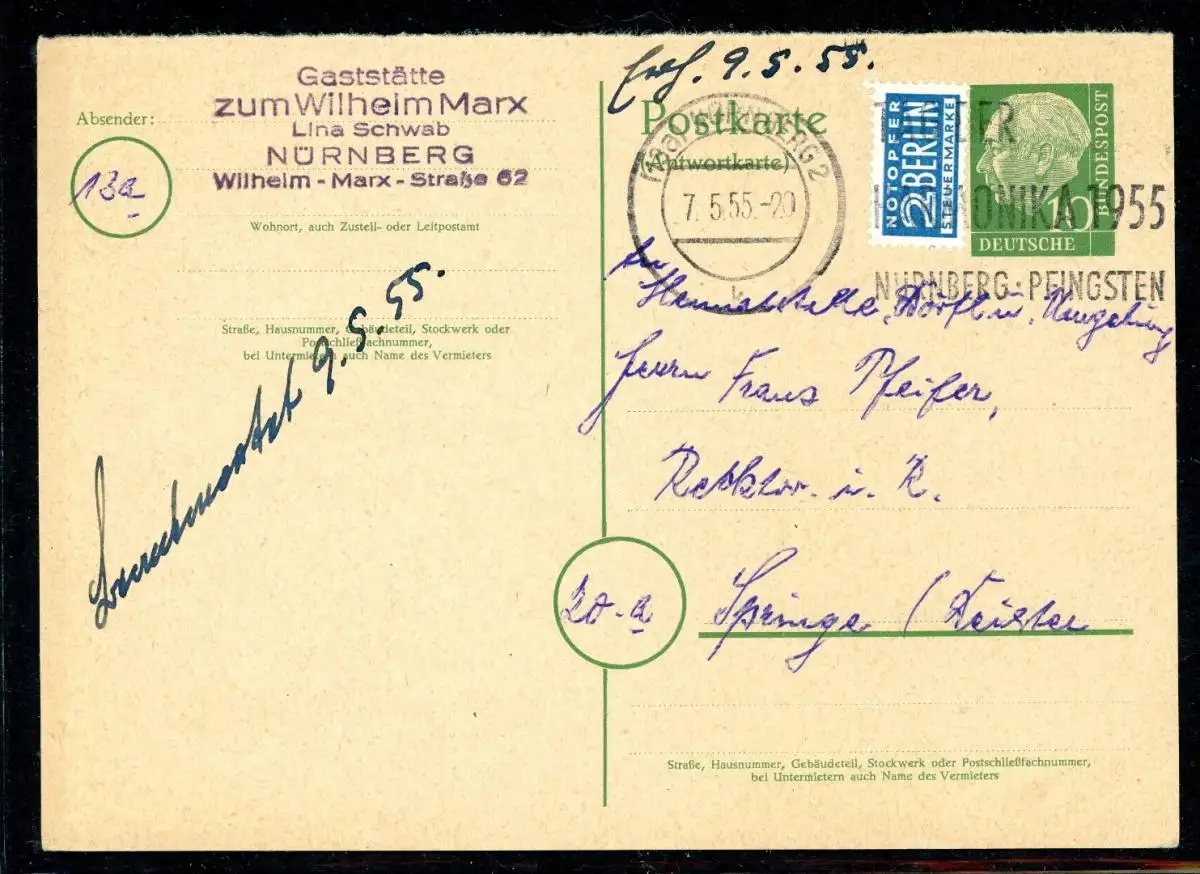 Bund Ganzsache P 21 A gestempelt Nürnberg #HO607
