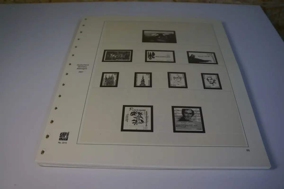 leerer gut erhaltener Vordruck mit Gebrauchsspuren, Safe Dual falzlos, Folien herstellungsbedingt leicht bis stark gelblich, Safe 2214 Blatt 86-117