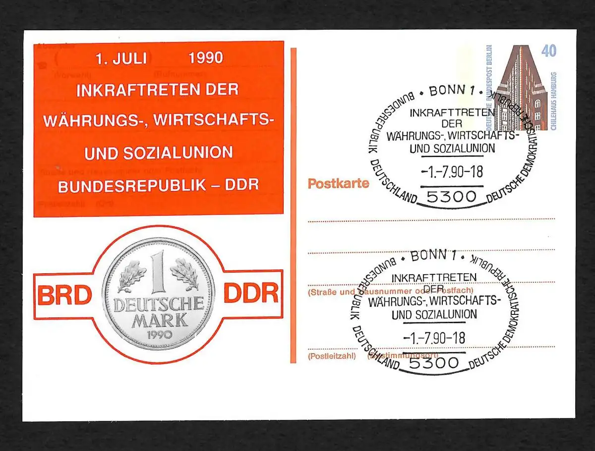Bund: Sonderbeleg Währungsunion Ost Mark zu DM, 1.7.1990