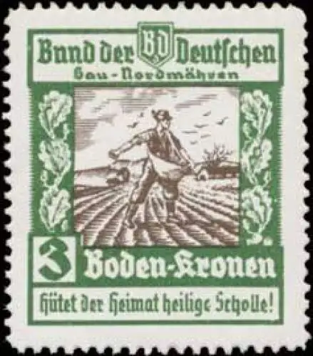 Gau-Nordmähren. Hütet der Heimat heilige Scholle! Spendenmarke, Boden-Krone, Ostrau, Mähren, Landwirtschaft, Größe/Zustand: 4x3 , guter Zustand, Original alte Reklamemarke die seinerzeit für die Werbung benutzt wurde