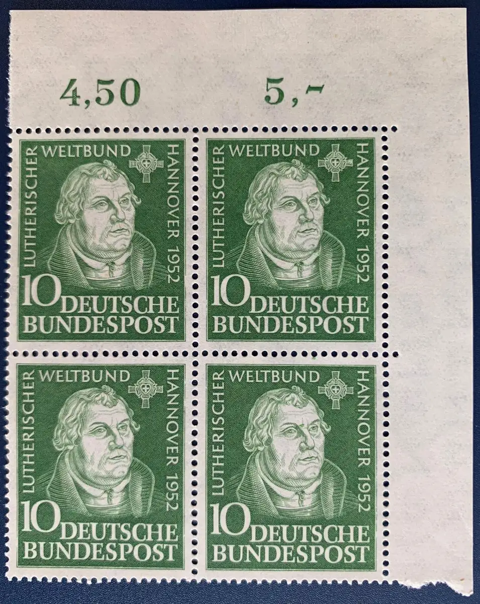 Bund, Viererblock Eckrandstück, Mi.Nr. 149, 1952