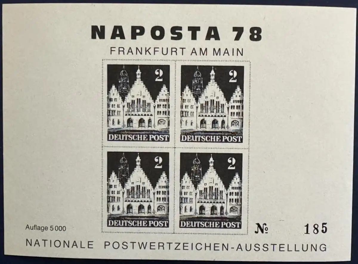 Schwarzdruck zur NAPOSTA 78, Auflage 5.000 Stück, das angebotene Exemplar hat die lfd. Nr. 185, Format 105 x 75 mm, ausgezeichnete Erhaltung.