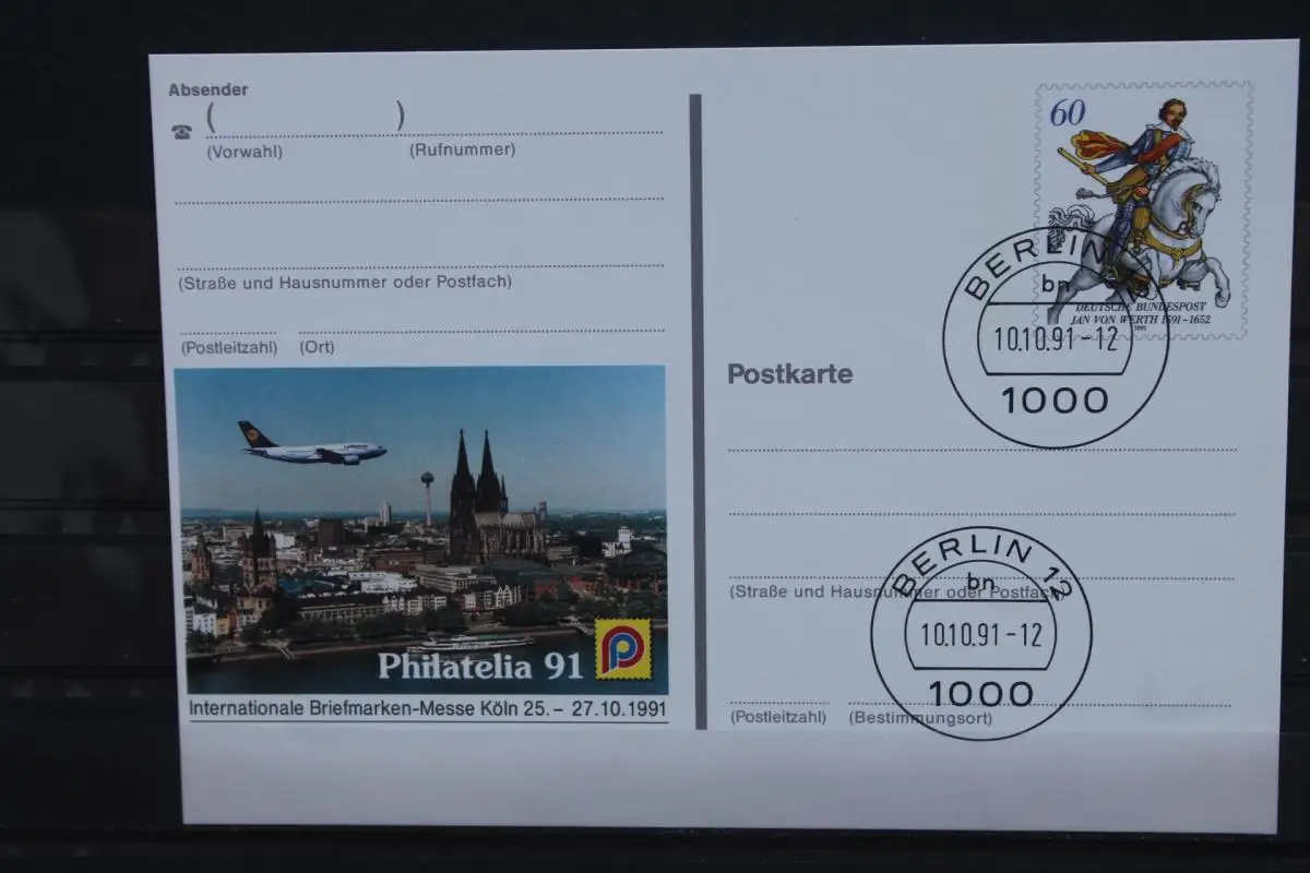 Sonderpostkarte: Internationale Briefmarken-Messe PHILATELIA 91 - Köln; Ersttagsstempel Berlin