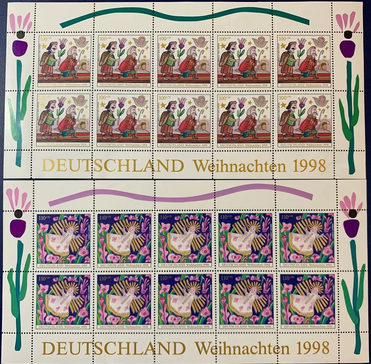 Kleinbogen, "Weihnachtsmarken", Mi.Nr. 2023/2024, einwandfreie Erhaltung, der Preis gilt für beide Kleinbögen zusammen.