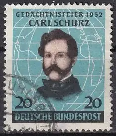 100. Jahrestag der Landung von Carl Schurz in Amerika: C. Schurz (1829-1906), deutscher Freiheitskämpfer, später amerik. Staatsmann; Hintergrund Erdkugel